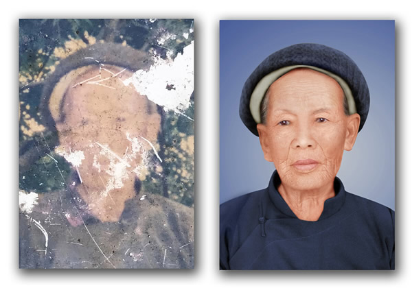 高级修复: 适用于原图保存不好,破损面积较大,模糊程度严重的照片修复。这样的照片只能参考原图信息,作全面的翻新,当然原图清晰的也可以做高级修复,因为看的更准确做出来的效果也越好。高级修复是目前老照片修复中难度比较大的一种技术,利用移植、合成等多种技术结合。还得有绘画欣赏修复能力和扎实的PS基本功才能完成,因为工絮太过复杂要用到大量的素材,所以高级修复只针对单人半身的老照片。全身的涉及时间素材和客人承受能力的问题,一般都不做高级修复。