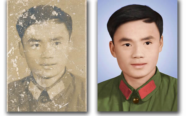 对于特别破损的照片,又是绒面的,带布纹或斑点的。就要用翻新的手段来处理,全面的修整照片。为了尽量避免照片做得平面变形,可以在后期处理上调整。比如添加杂色或移植皮肤层等等,把照片做旧。结合色彩的渲染和背景的处理可以让照片在保持原有相貌不变的情况下焕然一新。当然我们做照片要尽量保持它的历史价值能修复的地方尽量修复,能不改变色彩的尽量不改变。那些不能用简单工具修补的照片尽量不要随便找个人就修,因为处理的过程越复杂 变形的可能就越大,破损程度比较大的照片你要想保持原貌是需要相当专业技术才可以做到的。如果找不到专业的技术人员,那么扫描到电脑保存就可以了。